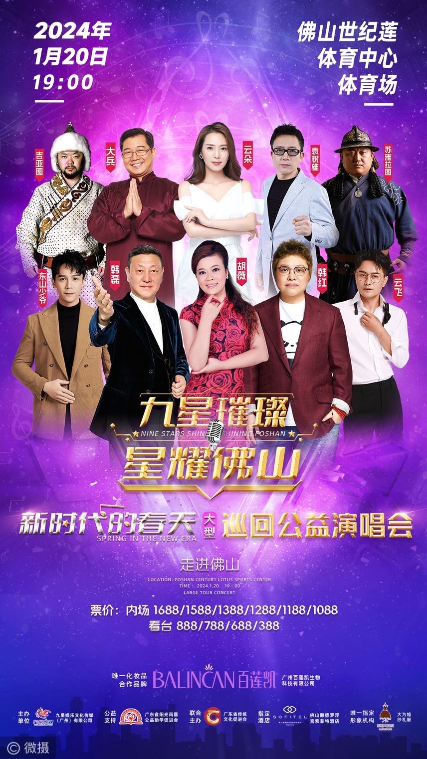 由九星娛樂文化傳媒(廣州)有限公司主辦,恒隆娛樂旗下高輝演出公司承辦的“新時代的春天”全國大型巡回公益演唱會-佛山站于1月20日唱響!